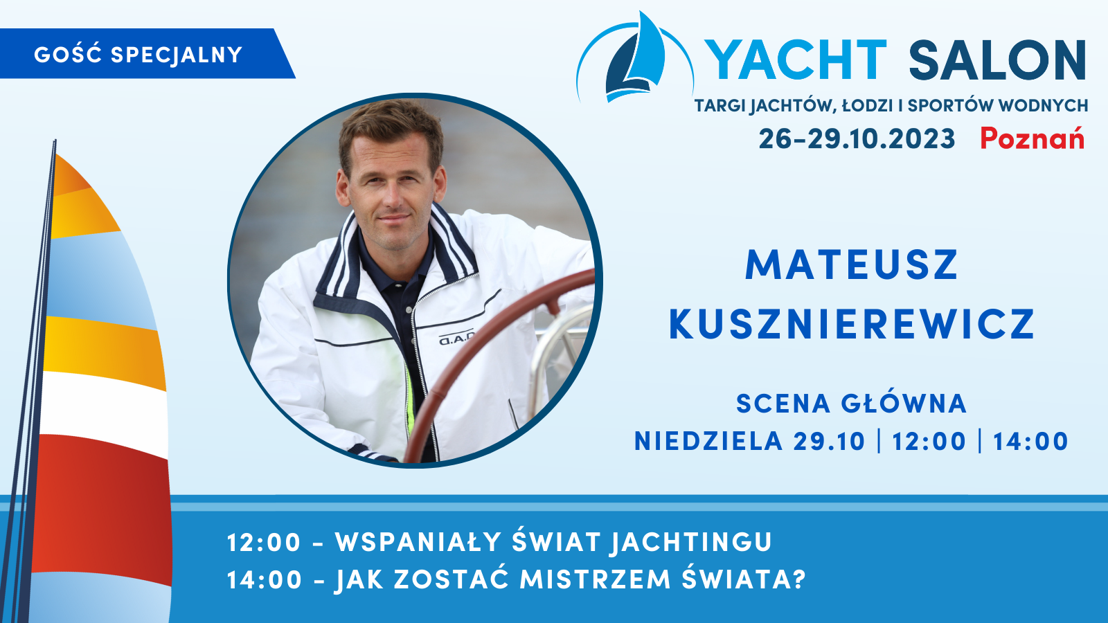 Yacht Salon to nie tylko bogata ekspozycja, ale także możliwość spotkań z żeglarskimi ekspertami i pasjonatami sportów wodnych. Gościem specjalnym poznańskich targów będzie mistrz olimpijski z Atlanty z 1996 roku oraz brązowy medalista z igrzyska w Atenach z 2004 roku Mateusz Kusznierewicz. W niedzielę 29 października o godz. 12:00 przedstawi temat „Wspaniały świat jachtingu”. A o 14:00 również na Scenie Yacht Salon podpowie „Jak zostać Mistrzem Świata”. Poza gościem specjalnym nie zabraknie ciekawych tematów i osobistości. Ze szczególnie ciekawym tematem wystąpi znany w żeglarskim świecie kapitan Krzysztof Baranowski, który opowie o strategii i taktyce w samotnej żegludze. Nie zabraknie również wystąpień związanych z bezpieczeństwem na wodzie oraz bardzo ważnych kwestii związanych z ekologią.