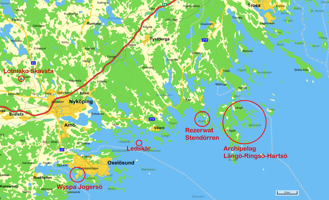 W tym roku w wariancie samolotowym będziemy startować z tej samej bazy, co w roku ubiegłym (wyspa Jogersö w pobliżu miejscowości Oxelösund), jednak trasa będzie prowadziła na południe w stronę północnej części Archipelagu Östergötlands. Planujemy penetrować około 100 wysp Rezerwatu Bråvikens, który rozciąga się u ujścia rzeki o tej samej nazwie.